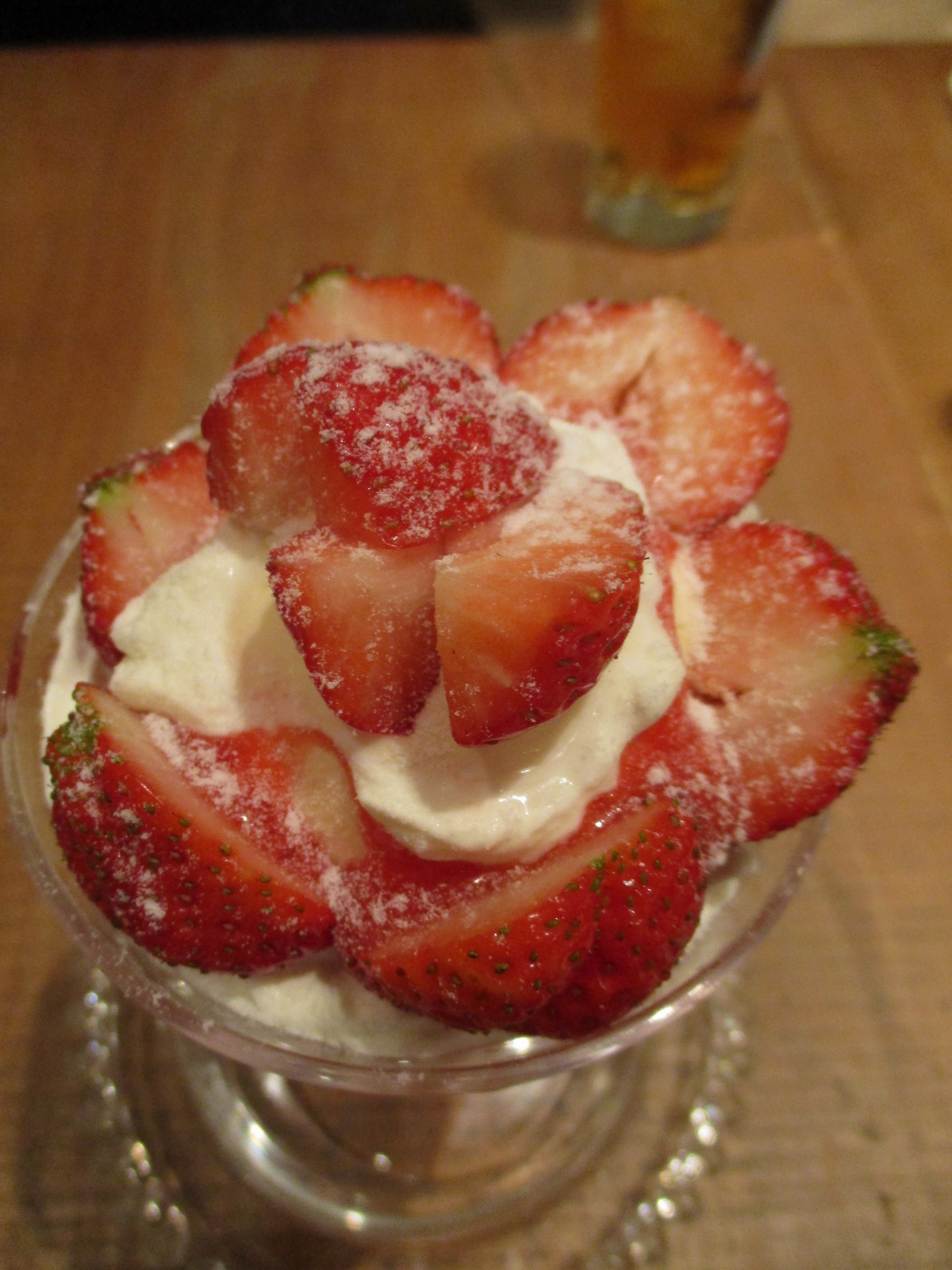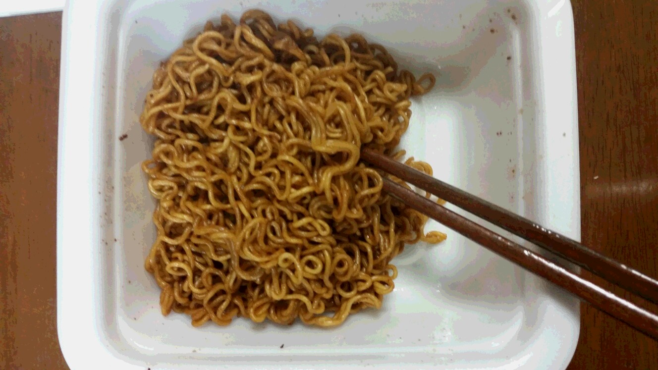 お湯を捨てて、チョコソースかけて、臭いを嗅いで、一口食べて・・・・・・・・・・・