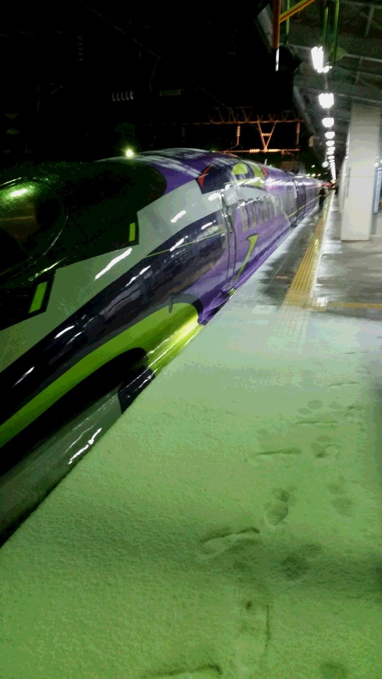 わたくし、310も早い時間から出社しました。そのおかげで新幹線のエヴァンゲリオンに乗ることができました♪