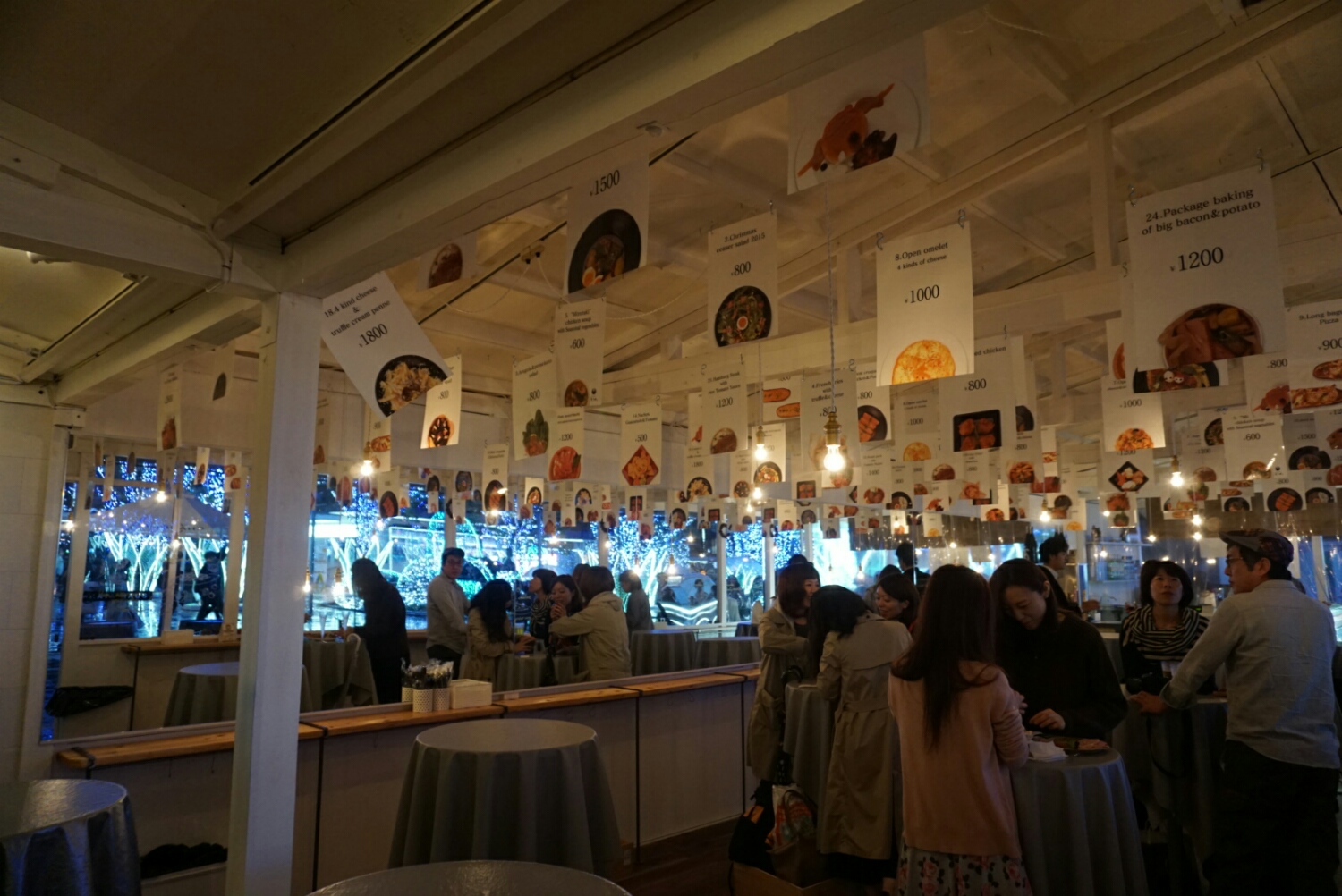 広場の中心に置かれたクリスマスタワーの周りに様々なお店が並び、