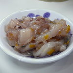 各テーブルに置かれたイカの塩辛や昆布など惣菜が食べ放題。