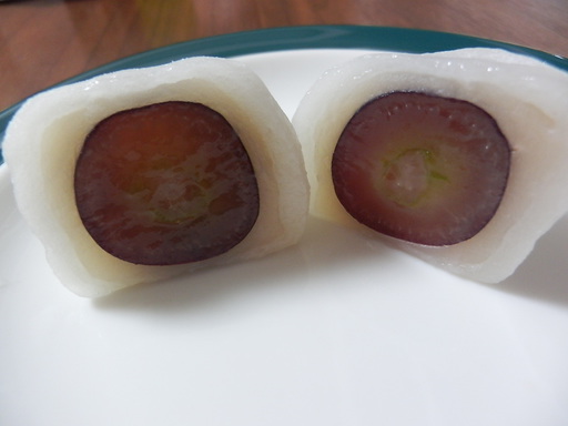 如水庵(じょすいあん)のブドウ大福、もしくは鈴懸(すずかけ)のお月見うさぎを食べます。