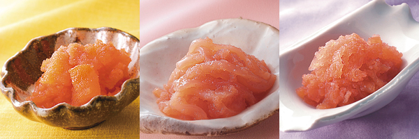 ○いか明太子 ○数の子明太子○くらげ明太子 ○ほたて貝柱明太子の4種類があります。