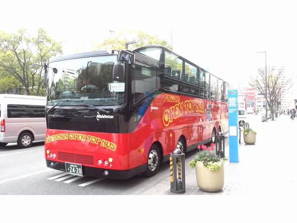 さて、今日は福岡市内の観光スポットをめぐる屋根のない2階建てバスその名も…