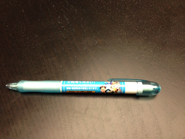 「エスカレーターは安全にご利用ください!」と書かれたシャープペン。