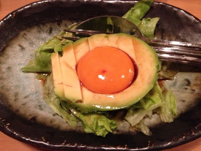 炉ばた酒場 男前キッチン」のアボカドユッケを注文!