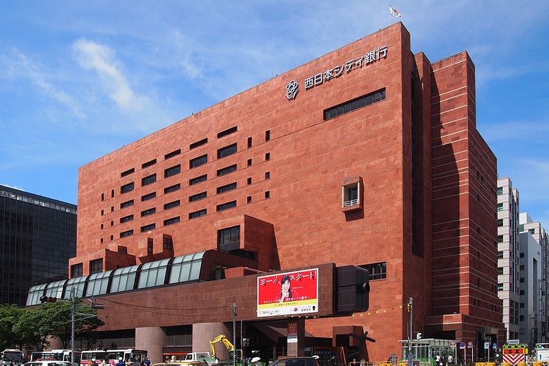 ↑西日本シティ銀行本店 ひときわ目立つ色です。