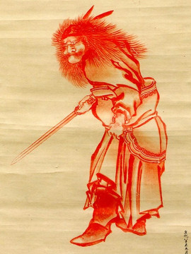ご覧のように、北斎は朱色を使って、中国の民間伝承に伝わる道教系の神である鐘馗を繊細な筆触で描写しています。この絵を見たら、ベッキーはほんっとに身動きが出来なくなりました。北斎って、確かに天才だなと思うしかないですね。