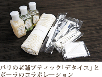 パリの老舗「デタイユ」とポーラのコラボレーションアメニテイ。