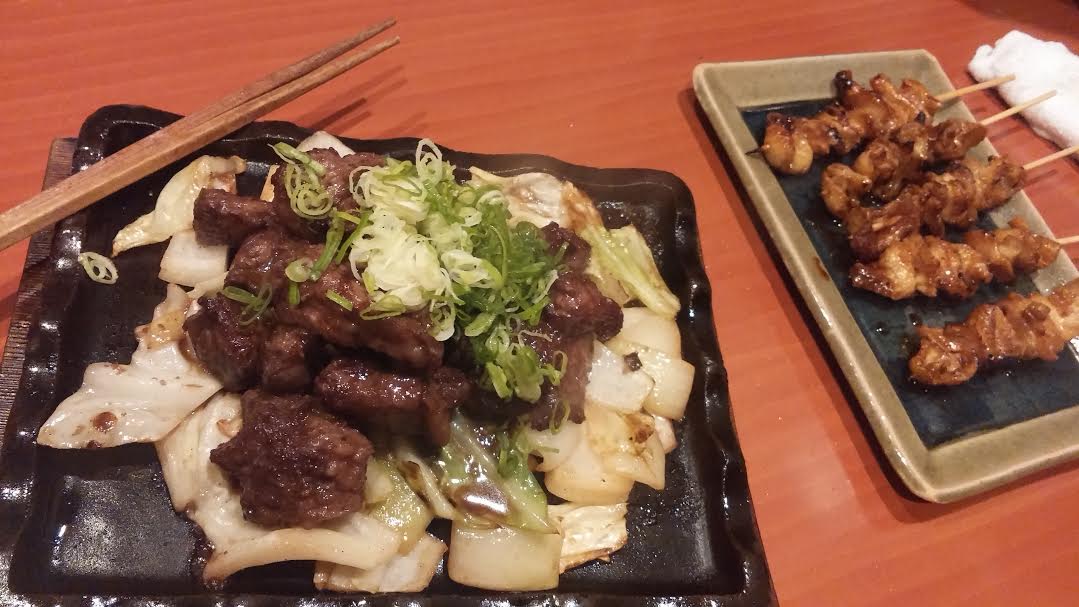 コスモが行った日はコースを頼みましたので、サラダや刺身、焼き鳥からデザートまで、嬉しいことに牛ステーキが付いてました(*^。^*)