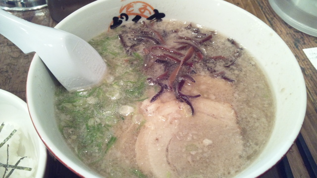 とんこつの濃厚なスープに細麺の組み合わせが絶妙です。