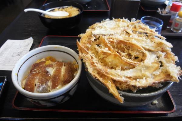 ごぼうが大きくてどんぶりからはみだしてうどんが見えないほど。カリッとさくさくに揚げたごぼうが食べても食べてもまだあります。