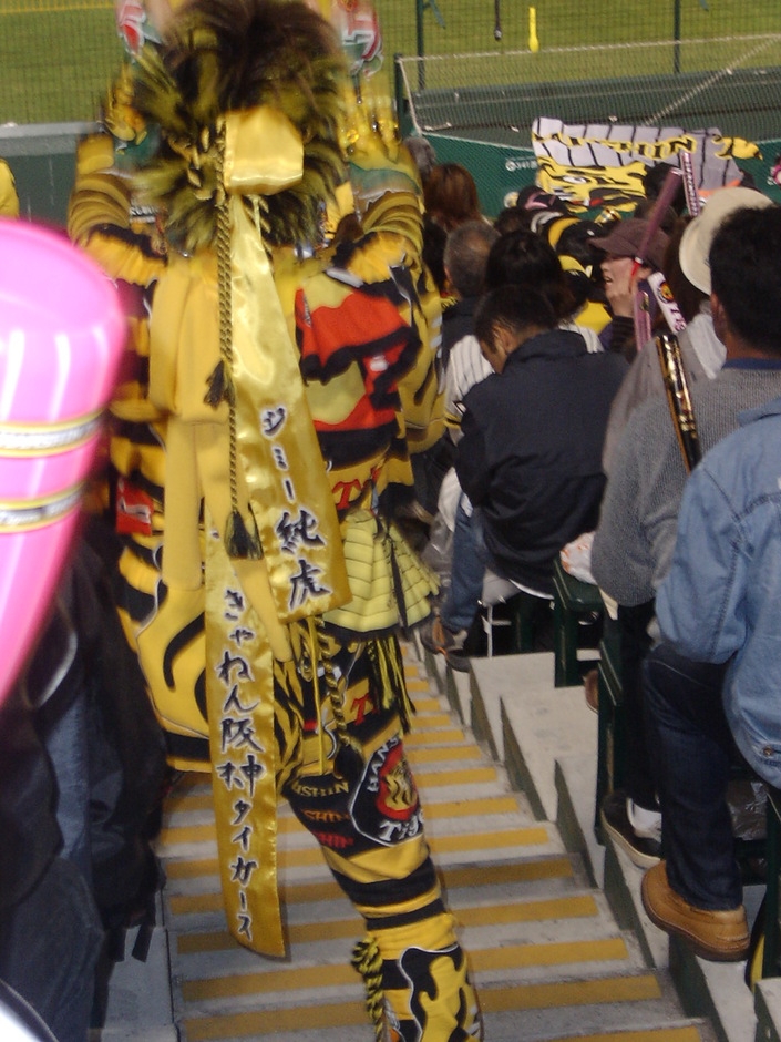 新神戸駅で阪神タイガースのカバンを持った全身黄色づくめの