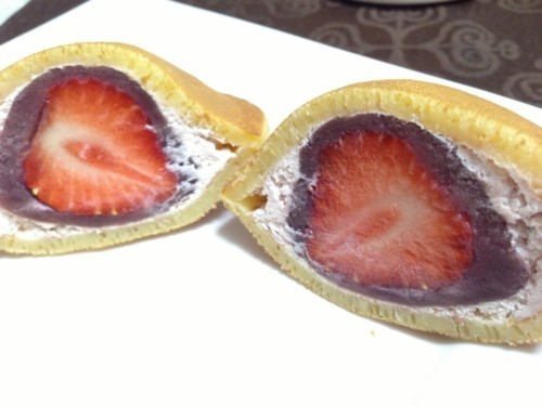 あまおうが丸ごと入ったどら焼きは、